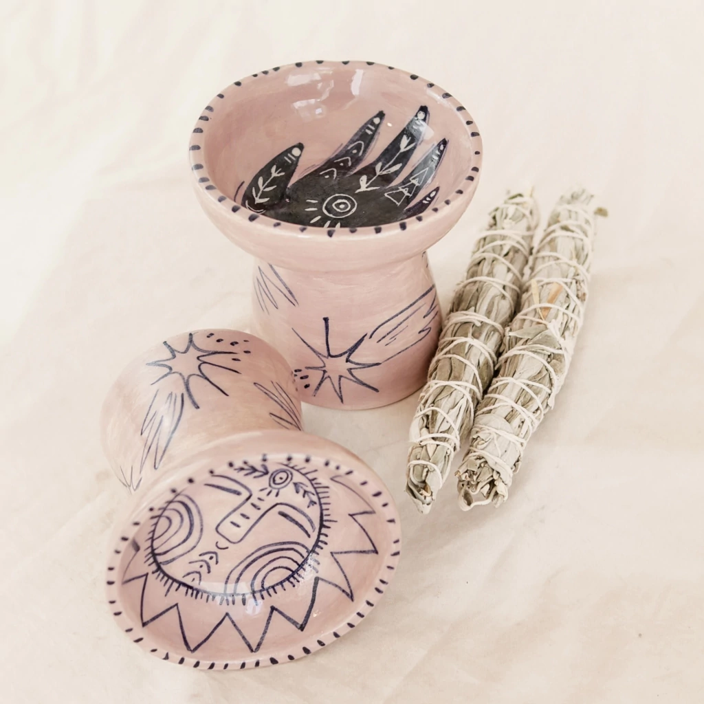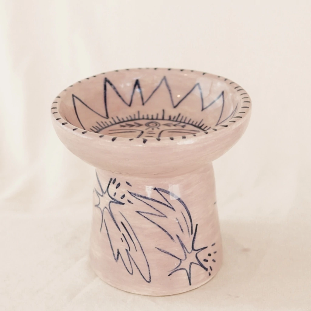 Sahumador de Cerámica con pie, un elemento esencial para tus limpiezas energéticas diarias. Cada pieza está hecha a mano con dedicación y detalle.